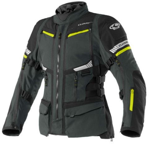 Le numerose regolazioni su braccia, avambracci, torace, polsi, vita e fondo giacca permettono di ottenere una vestibilitร su misura. Sono presenti tasche frontali convertibili in prese dโaria, tasche impermeabili, tasche scaldamani, un tascone posteriore, un taschino sulla manica e sei tasche interne, di cui due impermeabili.